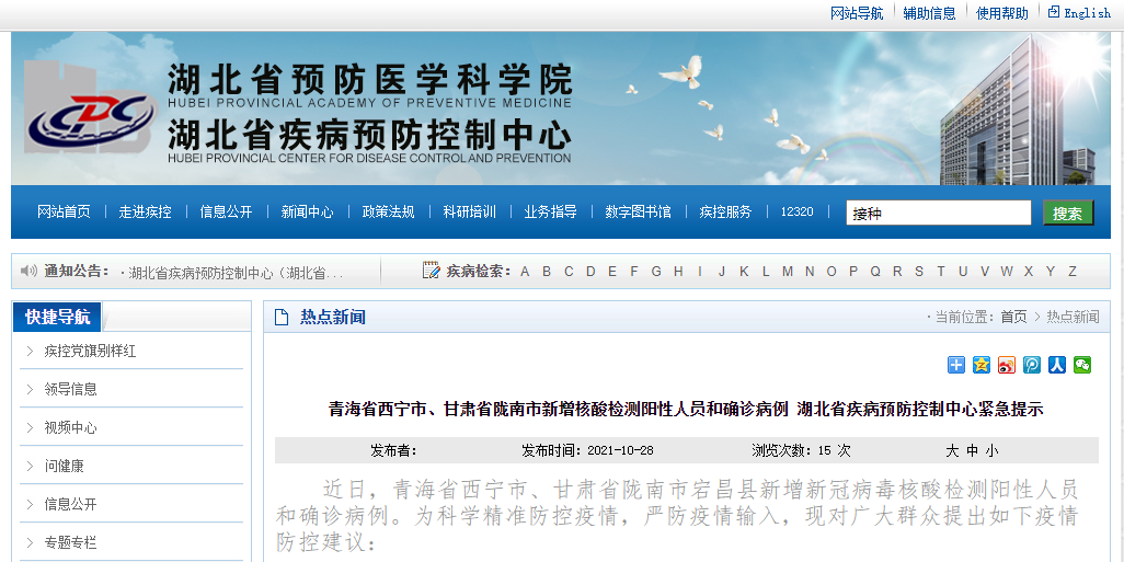 青海省西宁市、甘肃省陇南市新增核酸检测阳性人员和确诊病例 湖北省疾病预防控制中心紧急提示