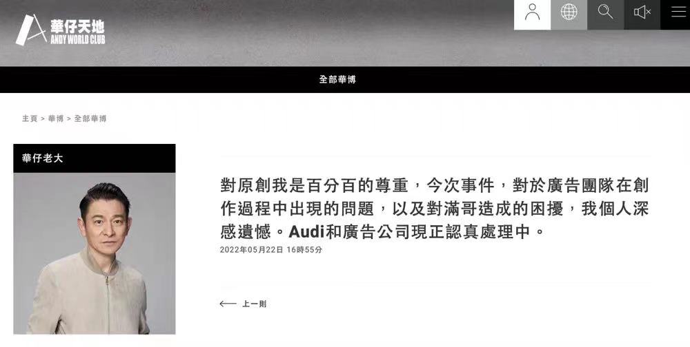 本来“奥迪”这次的小满广告上架仅一天,在抖音上就点击量过亿,微信朋友圈刷屏,满满的都是正能量。可接下来的剧情反转,却令人大跌眼镜,其广告文案几乎完全抄袭自抖音用户“北大满哥”。很快,奥迪公司道歉,广告下架,刘德华深表遗憾,代理广告公司上思广告承认团队版权意识淡薄,将尽最大努力弥补对原作者的损失。