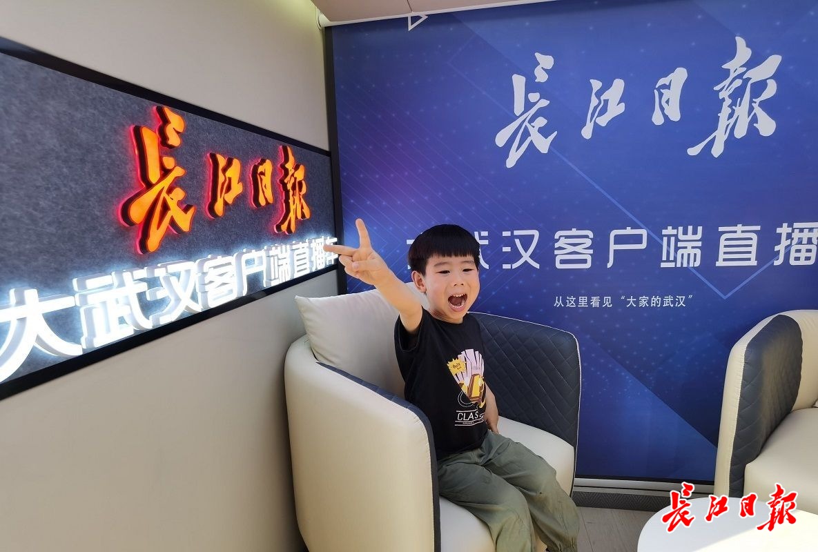 等了近半个小时,直播间内的直播告一段落,小男孩立马跑到直播间参观,请长江日报摄影记者帮忙拍了好几张照片后才被妈妈领回了家。