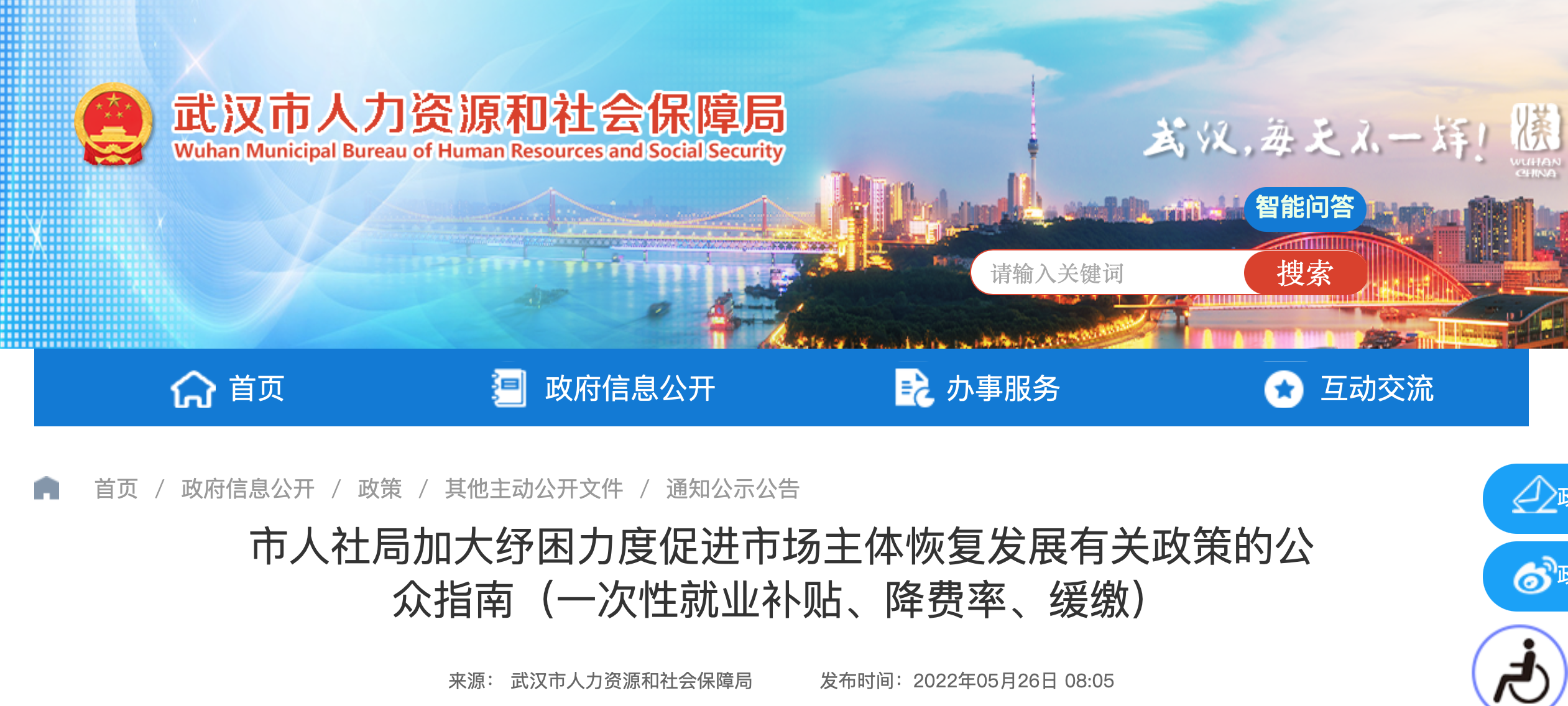 政策依据:《关于做好武汉市一次性吸纳就业补贴发放工作的补充通知》(武人社函〔2022〕70号)