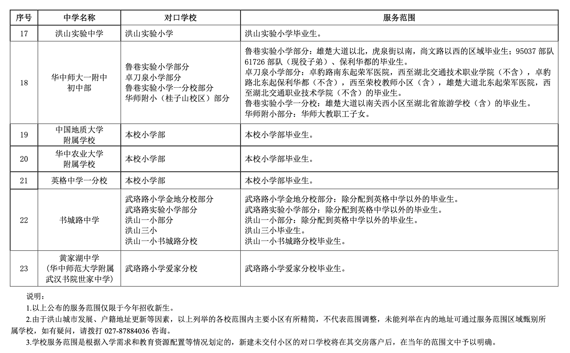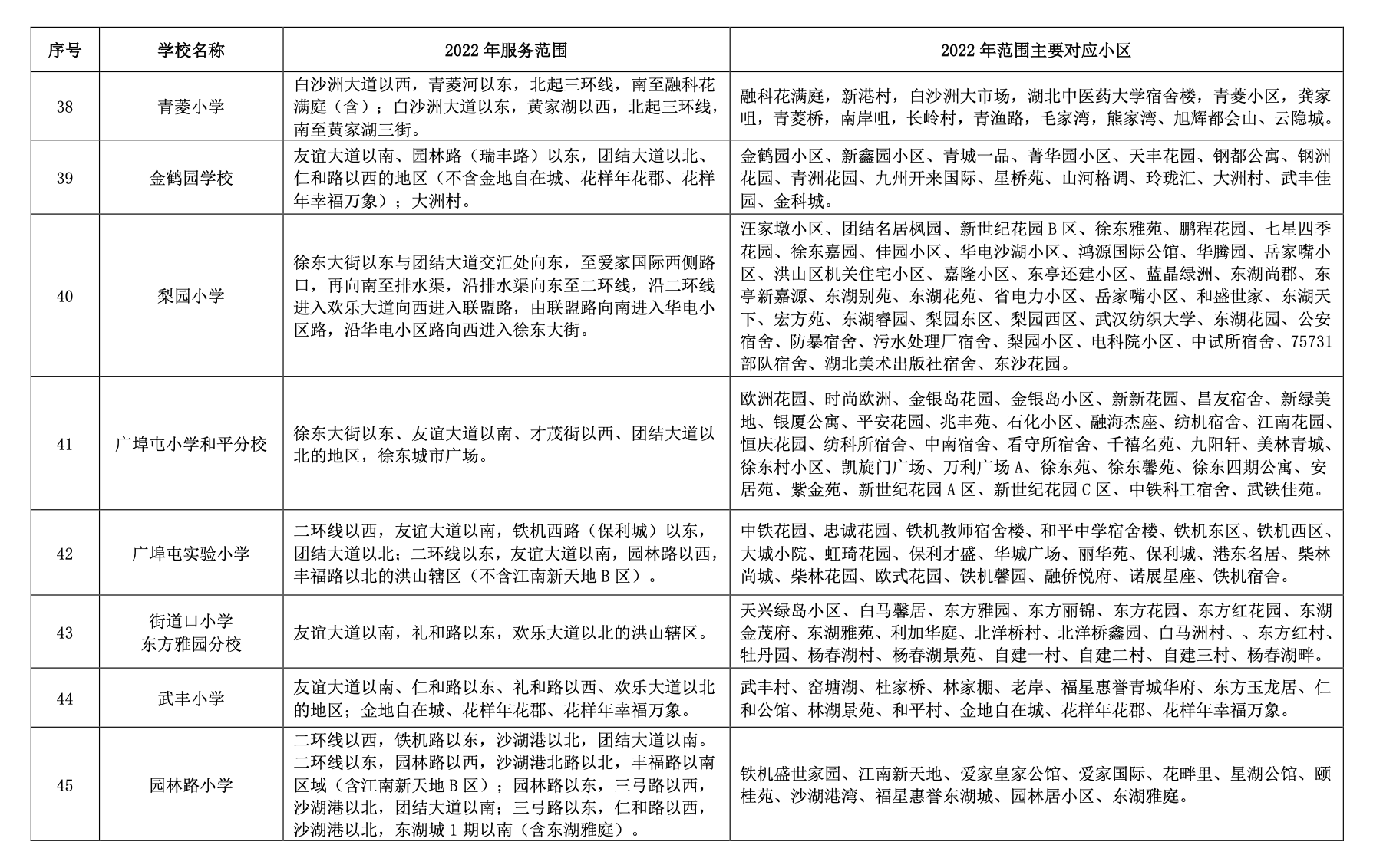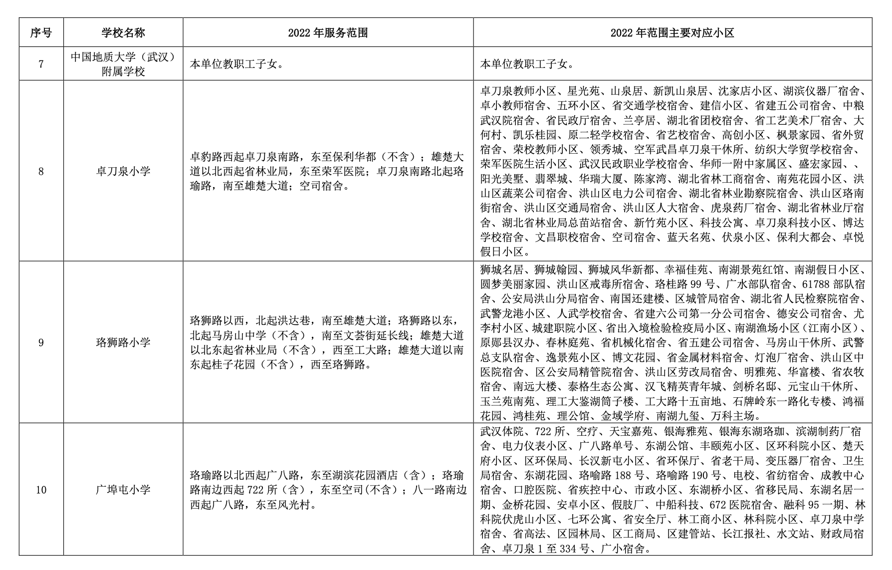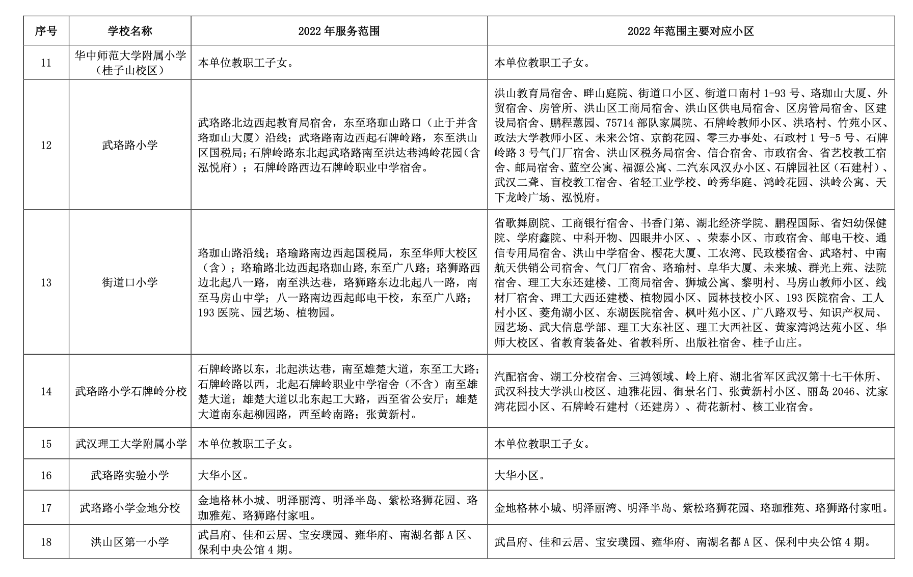 洪山区对口划片信息公布 2022-05-31 11:08 洪山区教育局 0 30日,洪山区教育局发布《关于划分义务教育阶段学校2022年服务范围的通知》,全文如下: 洪山区小学2022年服务范围: 洪山区初中2022年服务范围: 在大武汉 聊教育那些事 扫码入群 掌握新鲜的教育资讯 了解更多教育资讯请点击此处 (来源:洪山区教育局) 【编辑:郑晓晓】