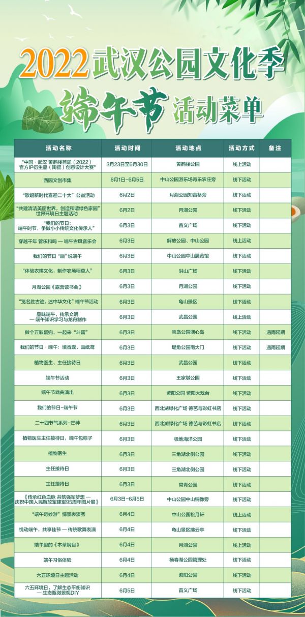 武汉公园文化季端午节活动菜单。