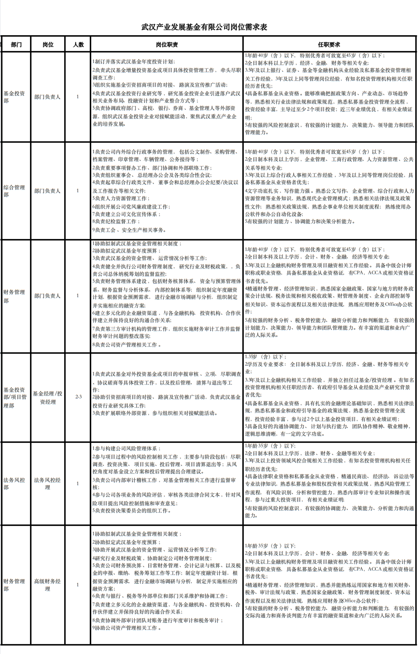 4.基金投资部/项目管理部 基金经理/投资经理2-3人;