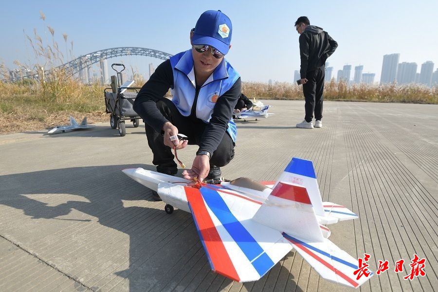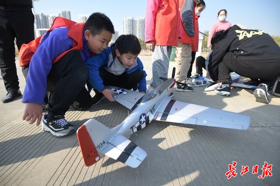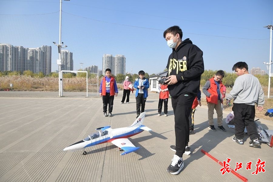 长江日报大武汉客户端12月6日讯 12月5日,在硚口区汉江湾体育公园,航模爱好者聚在一起,趁着天气晴好,放飞各式航模飞机。螺旋桨、涵道式航模飞机相继从跑道上起飞,在飞手的控制下做出各种特技动作,孩子们也在教练的指导下了解航模、操纵航模飞机,享受美好假日。(长江日报记者詹松 摄影报道)