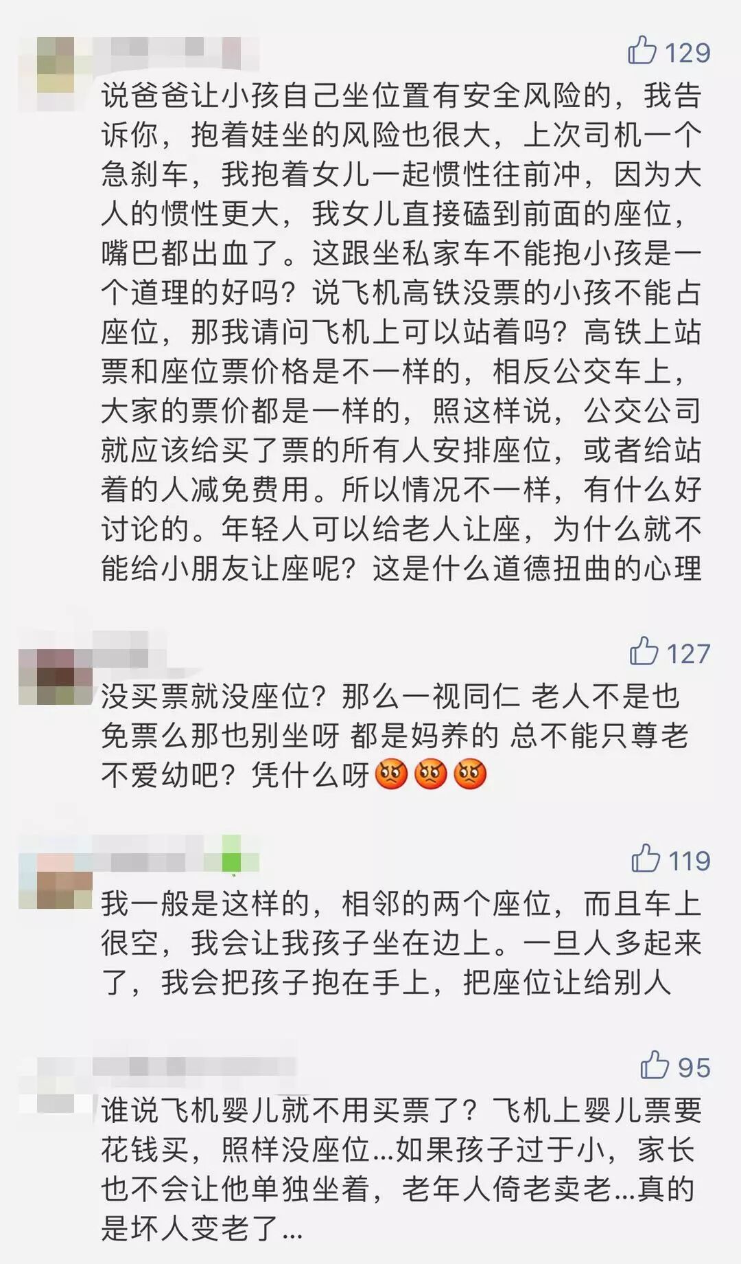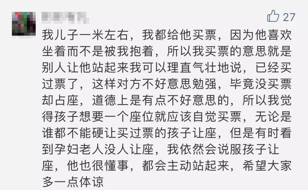 车厢里有些人在劝,说自己买了票了,让给小孩坐,现在年轻人都不容易!也有人说老人家说的也没错!