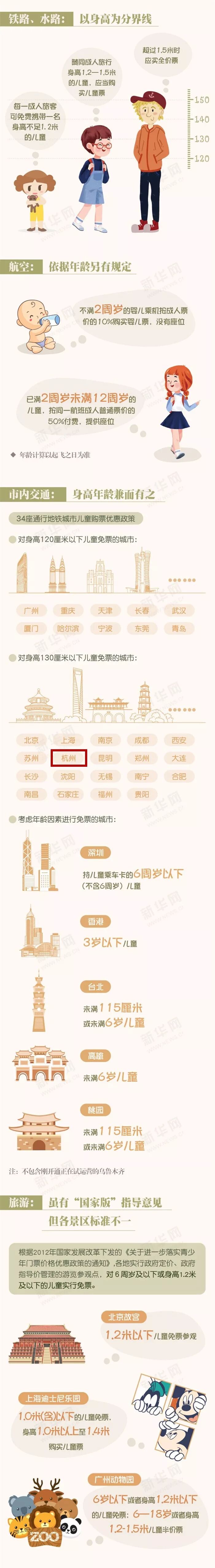 再看张图,了解一下目前各城市在交通、旅游方面儿童票的设置。