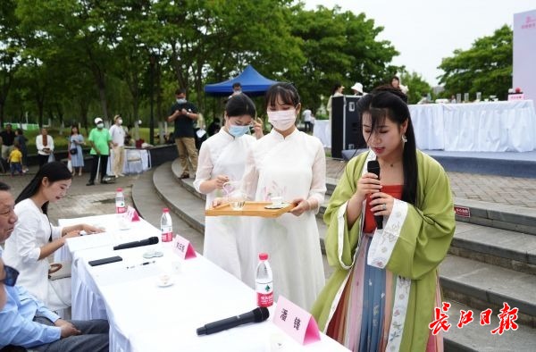 长江日报大武汉客户端6月13日讯(记者詹丽 通讯员刘天昌)荷风情韵,茶香醉人。12日上午,伴着朵朵摇曳婀娜的荷花,2022年武汉荷花节系列活动之“荷”茶——沙湖公园清雅茶会活动,在 翰园(C区)正式开展。本次公园内的4家商户现场同台竞技,进行茶艺比拼,这四处点位的专属IP形象也同步亮相。优雅的手法、淡雅的茶香、悠扬的古琴、Q萌动漫形象……为市民带来一场清新雅致的视听盛宴。