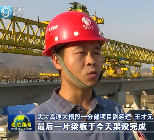 武大高速大悟段一分部项目副经理王才元:接下来我分部的工作重点主要集中在路基、桥梁、隧道的施工,预计在明年3月份,我标段将实现全部贯通。