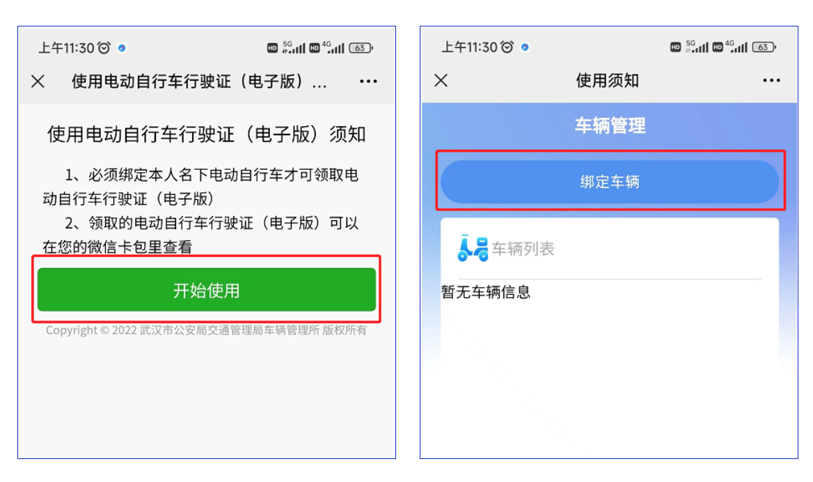 仔细查看电动自行车行驶证(电子版)须知后点击【开始说明】,在车辆管理页面点击【绑定车辆】