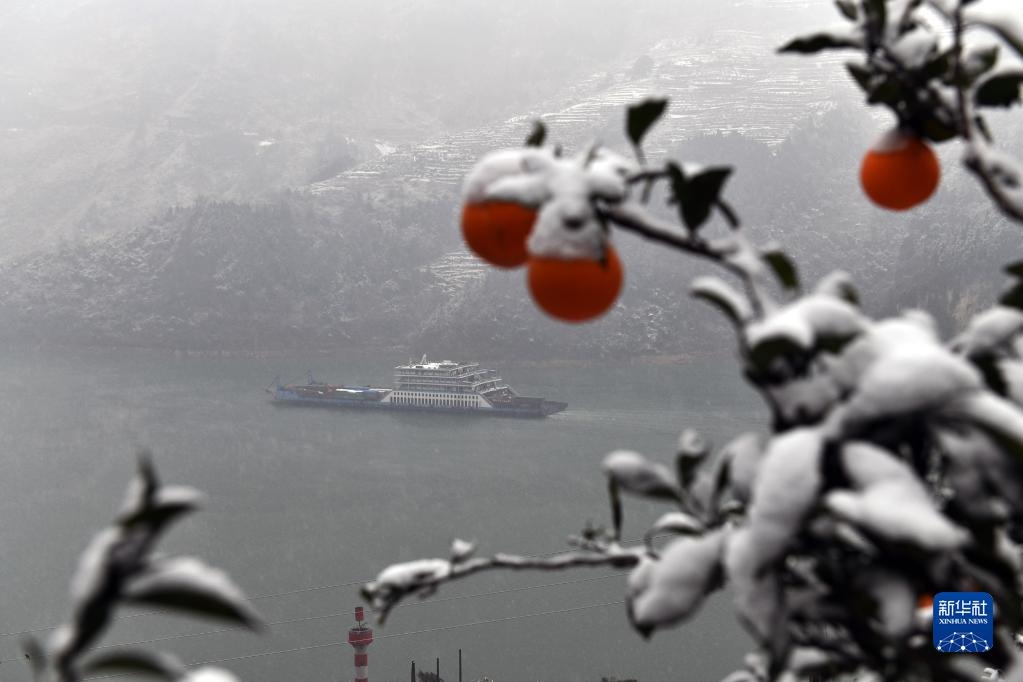 12月26日,船只从湖北省宜昌市秭归县茅坪镇一处脐橙园旁驶过。新华社发(王辉富摄)