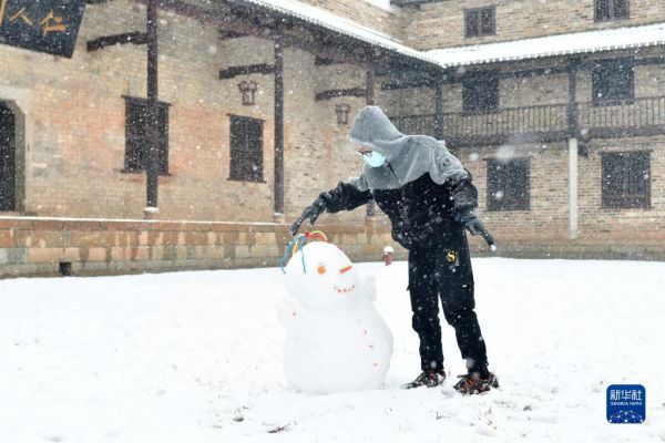12月26日,在湖南省娄底市双峰县荷叶镇,小朋友在堆雪人。新华社发(李建新摄)