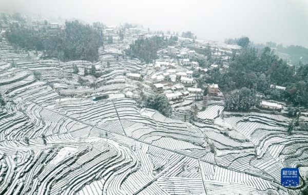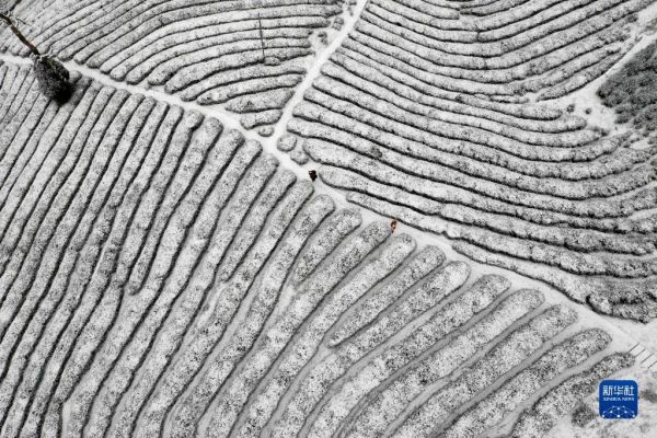 12月26日,湖北省保康县一处茶园被白雪覆盖(无人机照片)。新华社发(杨韬摄)