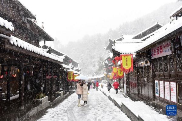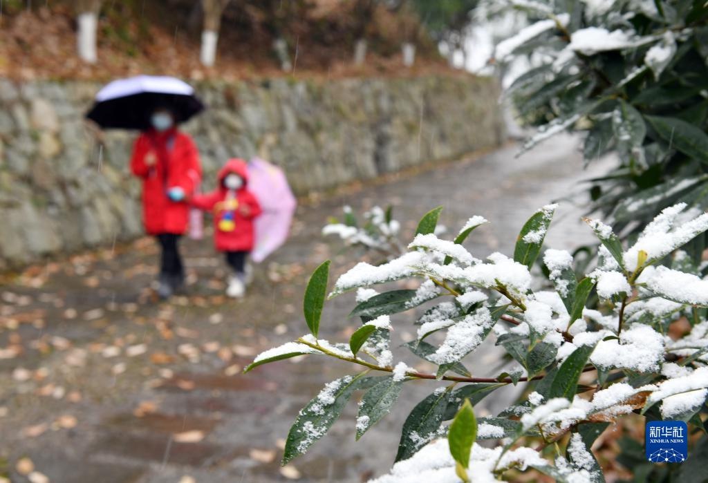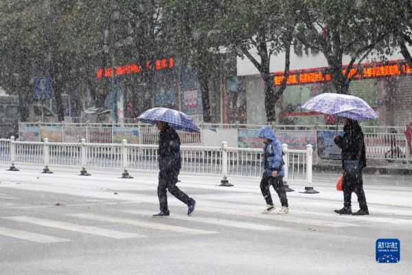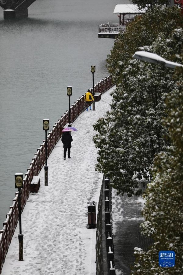 12月26日,在贵州省丹寨县县城,人们在雪中行走。新华社发(杨武魁摄)