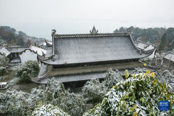 12月26日在湖北省宜昌市秭归县屈原故里景区拍摄的雪景。新华社发(王罡摄)