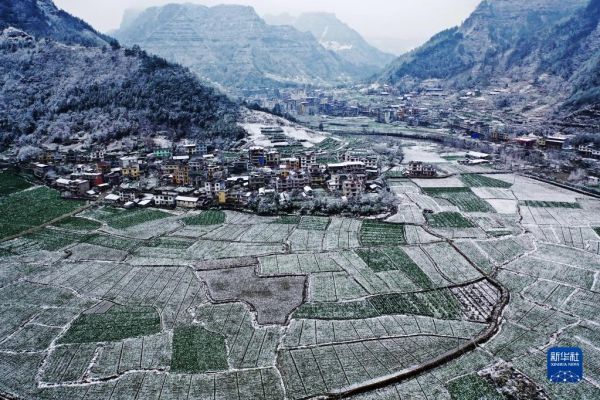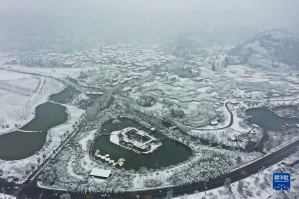 12月26日在湖北省秭归县花果园村拍摄的雪景(无人机照片)。新华社发(梅雪飞摄)