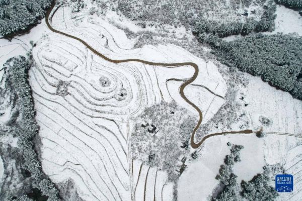 12月26日在贵州省毕节市赫章县平山镇拍摄的雪景(无人机照片)。新华社发(韩贤普摄)