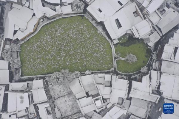 12月26日在湖南省吉首市乾州古城拍摄的雪景(无人机照片)。新华社发(刘振军摄)
