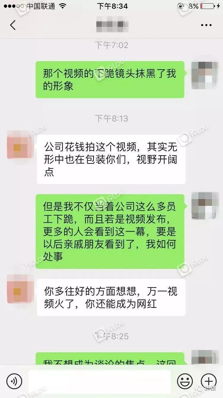 昨晚拍摄结束后我回家想了很久,那一幕我永远都忘不了,我竟然给o某跪下了!我连我父母都没跪过,而且这种画面还要在公众平台播放。每次一想到这个事,我就很气愤,真的是越想越气!我的形象全被毁了,这种视频要是被我亲戚朋友看到,我怎么在他们面前做人!