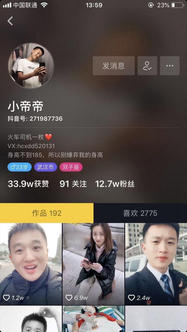 “刚才在武汉江滩看樱花,打了一个嗝,里面全是火锅的味道,突然间好想吃火锅,小帝这就带你们去一家最爱的武汉火锅店......”喜欢播音的王崇帝自己还开了个抖音号,发一些自己上班、为旅客服务和说话的视频,其中不乏对武汉美食的介绍和特色推荐,点击量不错,现在已经有12.7万粉丝。