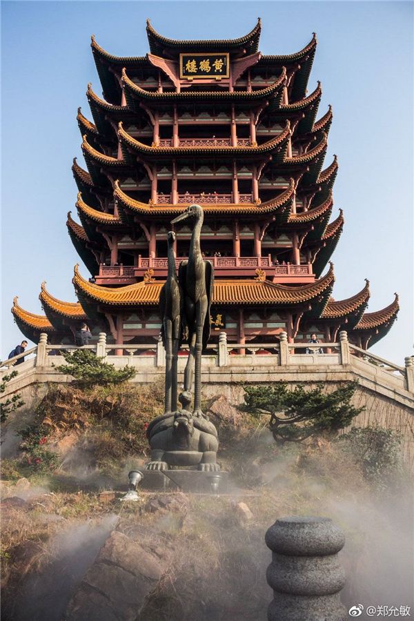 郑允敏拍摄的黄鹤楼,烟雾缭绕,仿佛真有仙人在此驾黄鹤远去。