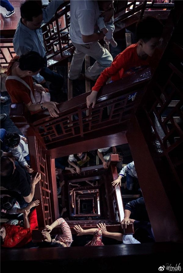 在她的镜头下,黄鹤楼的楼梯回环似镜像、迷宫。
