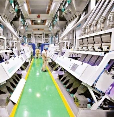 在益海嘉里,一天可加工500吨大米的厂房,仅需6个人操作。长江日报记者刘斌 摄