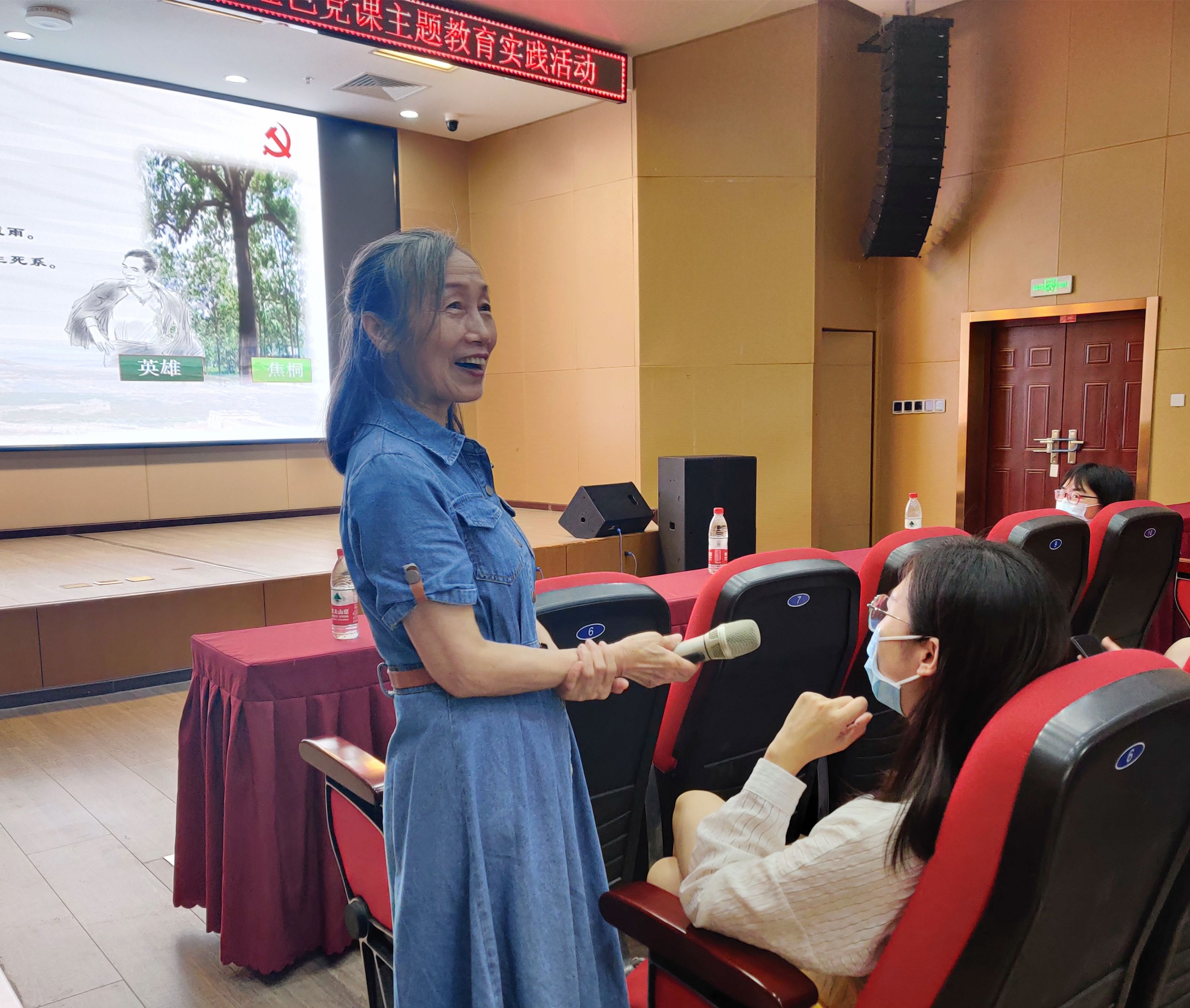 党课过程中,围绕“实干为民,主动担当”两个关键词,沙玥从焦裕禄在兰考的工作和同病魔的斗争讲起,分享了焦裕禄精神中“公仆精神、求实作风、奋斗精神、道德情操”几方面内涵。同时,沙玥分享了《念奴娇·追思焦裕禄》的创作背景与内涵,展示出习近平总书记的奋斗脚步与为民情怀。通过对“泡桐”“沙丘”“绿我涓滴,会它千顷澄碧”等关键词句的赏析,沙玥分享到,《念奴娇·追思焦裕禄》一词“饱含深情、意境开阔、正气流贯,其中蕴含的精神和使命引发党员们不断学习感悟。