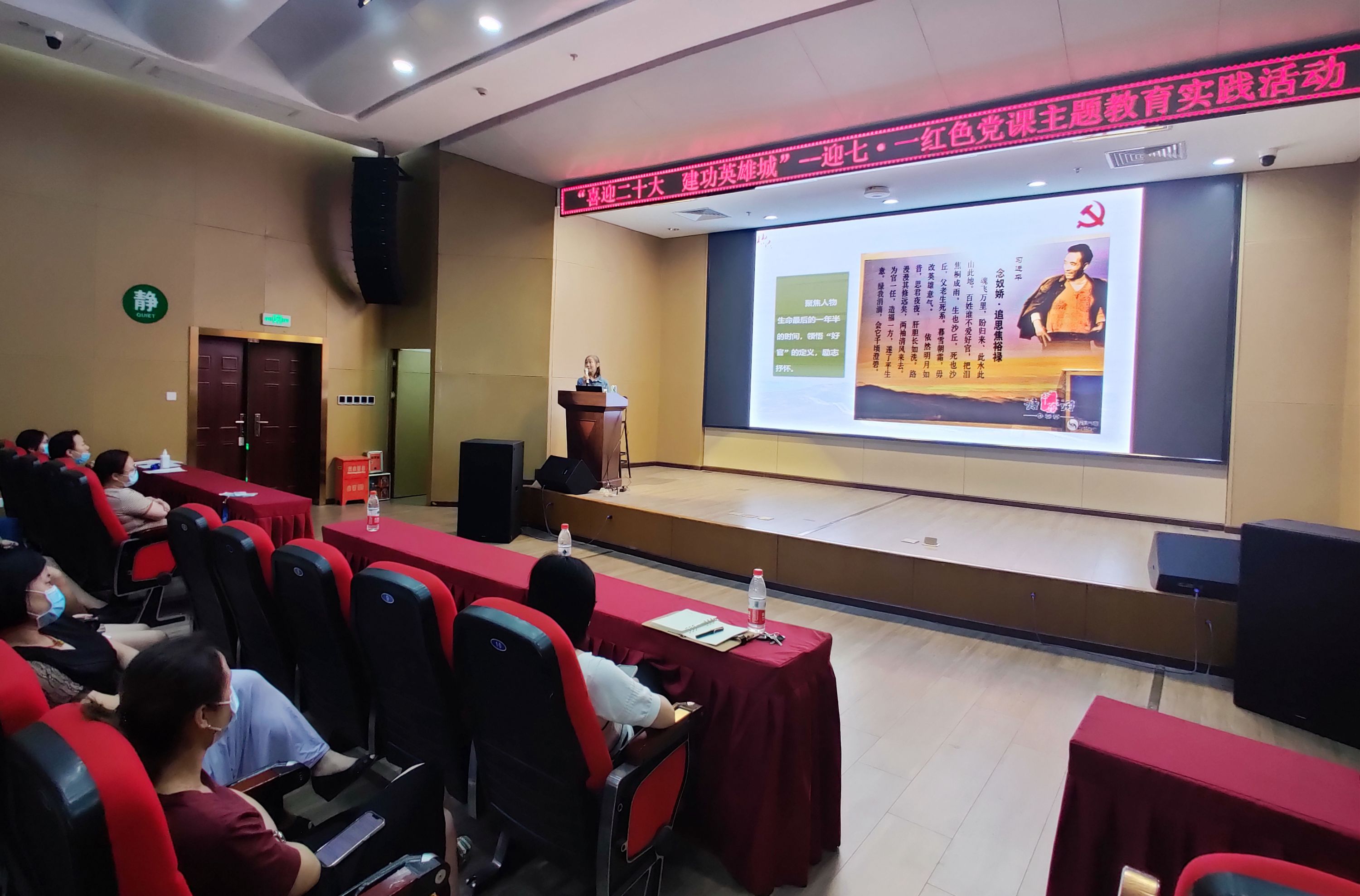 29日下午,“喜迎二十大 建功英雄城”迎七一红色党课主题教育实践活动在洪山区文化大厦五楼报告厅举办,活动开始,全体人员一起奏唱国歌,与会党员在洪山区图书馆党支部书记周娟的领誓下重温了入党誓词。