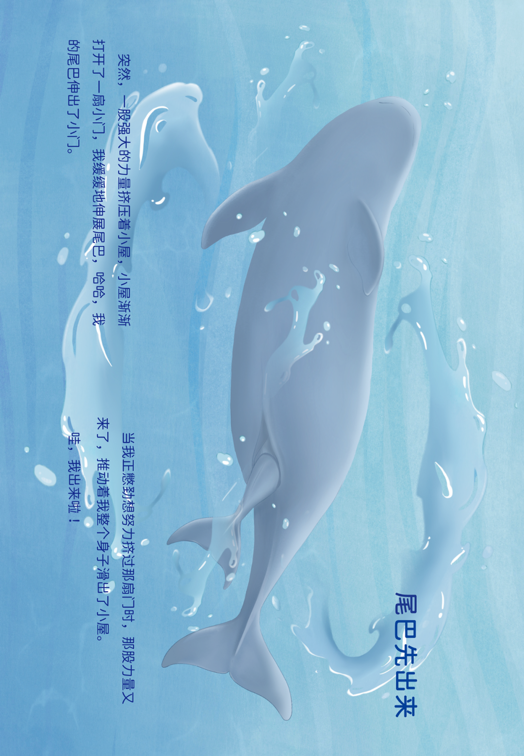 江豚出生时是尾巴先出来,这样有助于小江豚更有力地在水里摆动;其次,呼吸孔在脑袋上,会防止呛水行为。从母豚的阵痛、幼豚的尾巴先出来开始,整个生产过程约1—2.5小时。