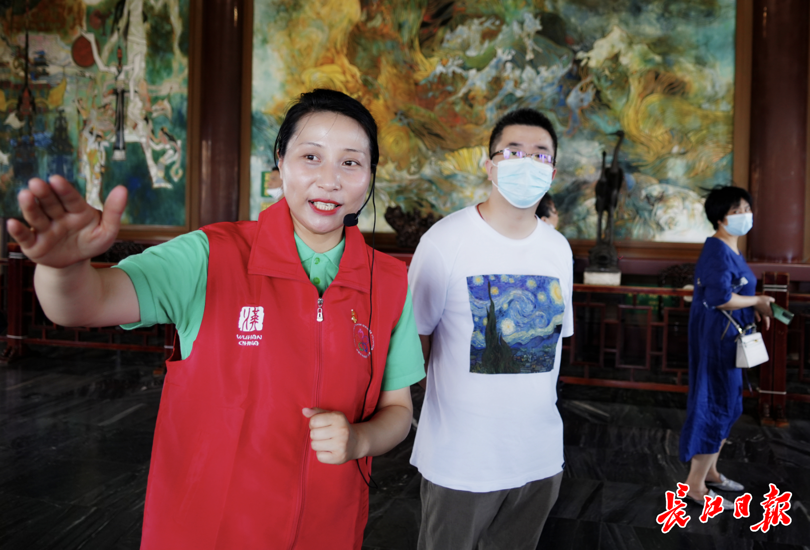 周媛在黄鹤楼公园做义务讲解。 记者何晓刚 摄