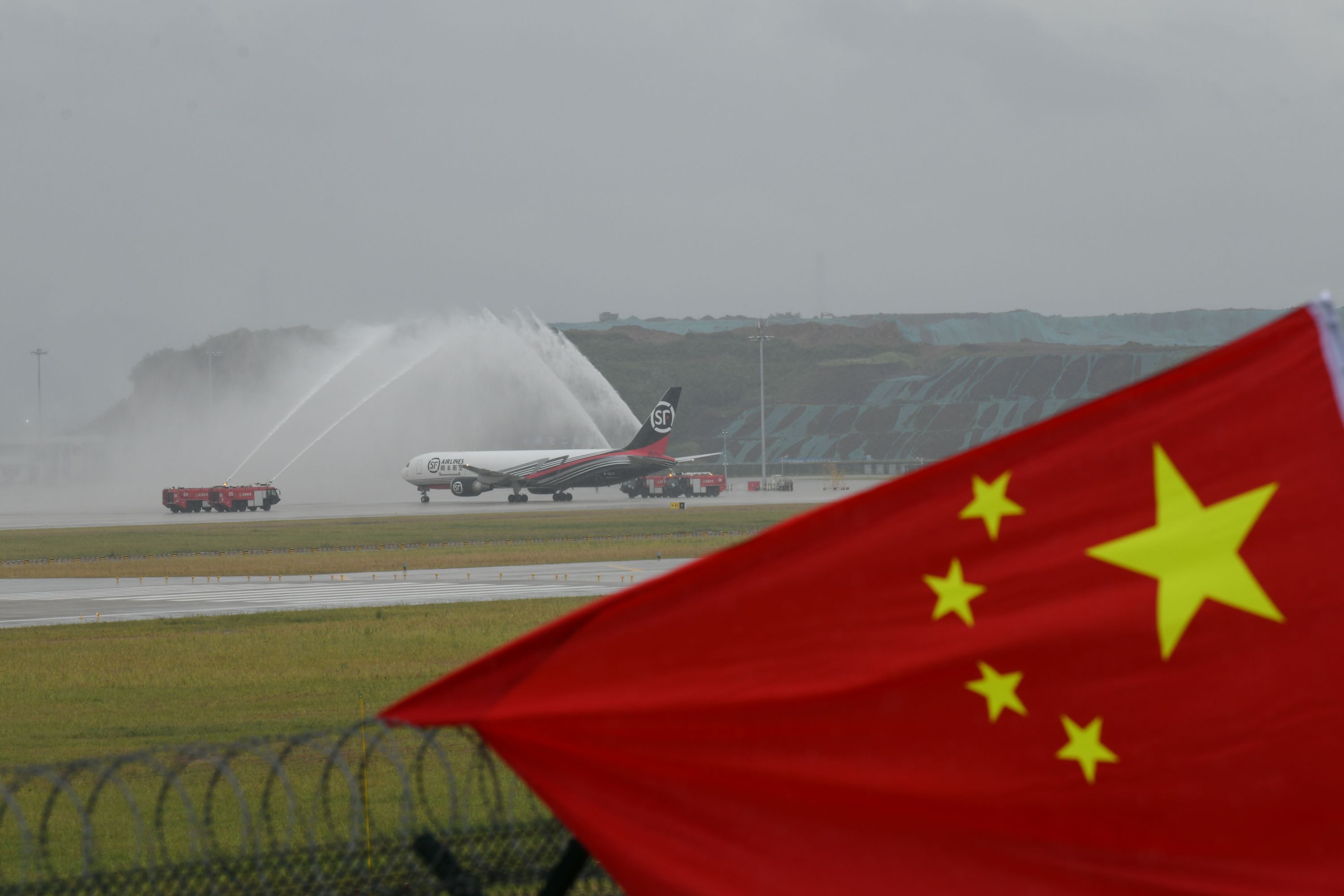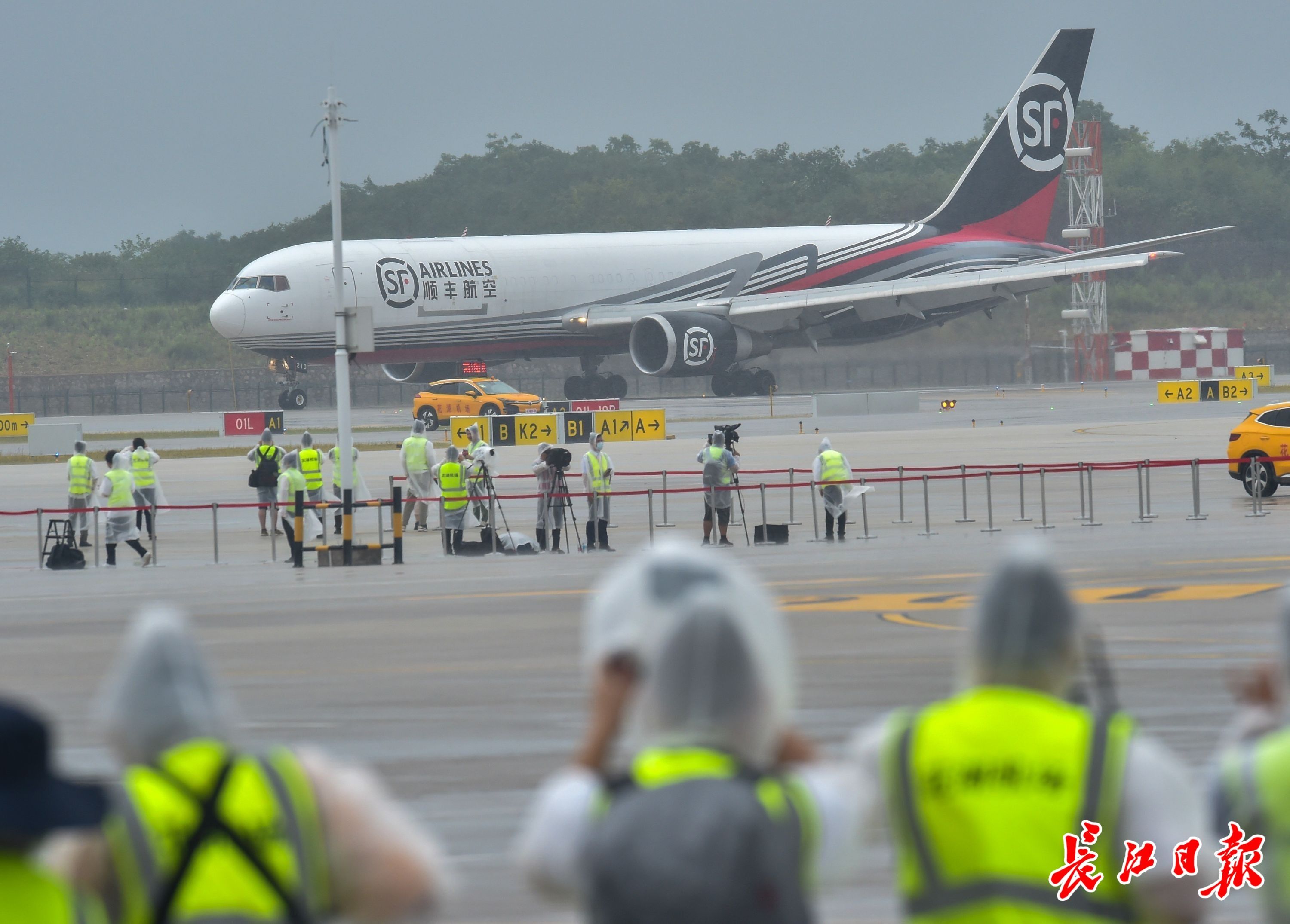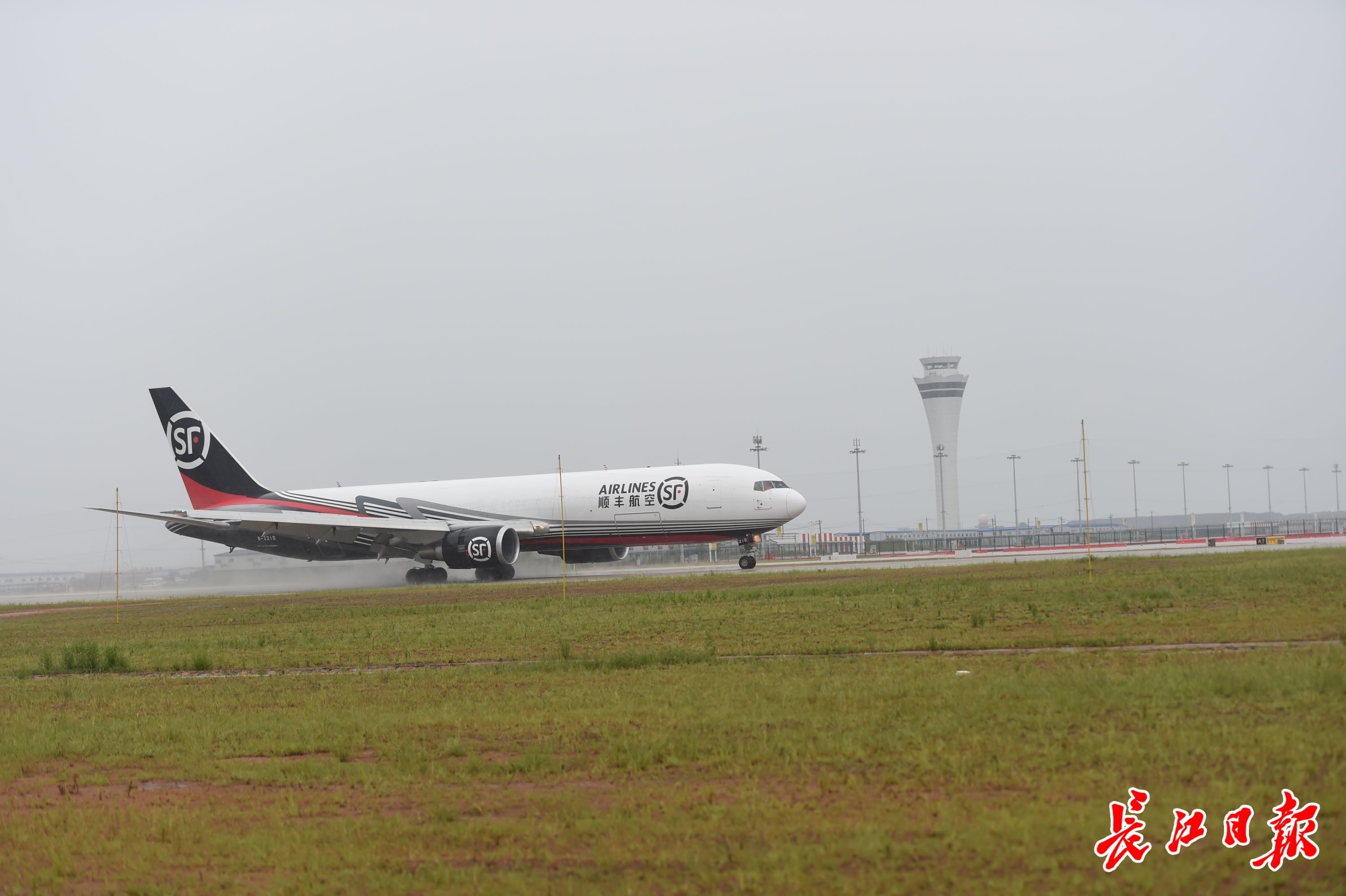 长江日报大武汉客户端7月17日讯 7月17日9:07 ,一架来自深圳宝安机场的顺丰航空全货机767在鄂州花湖机场西跑道降落。
