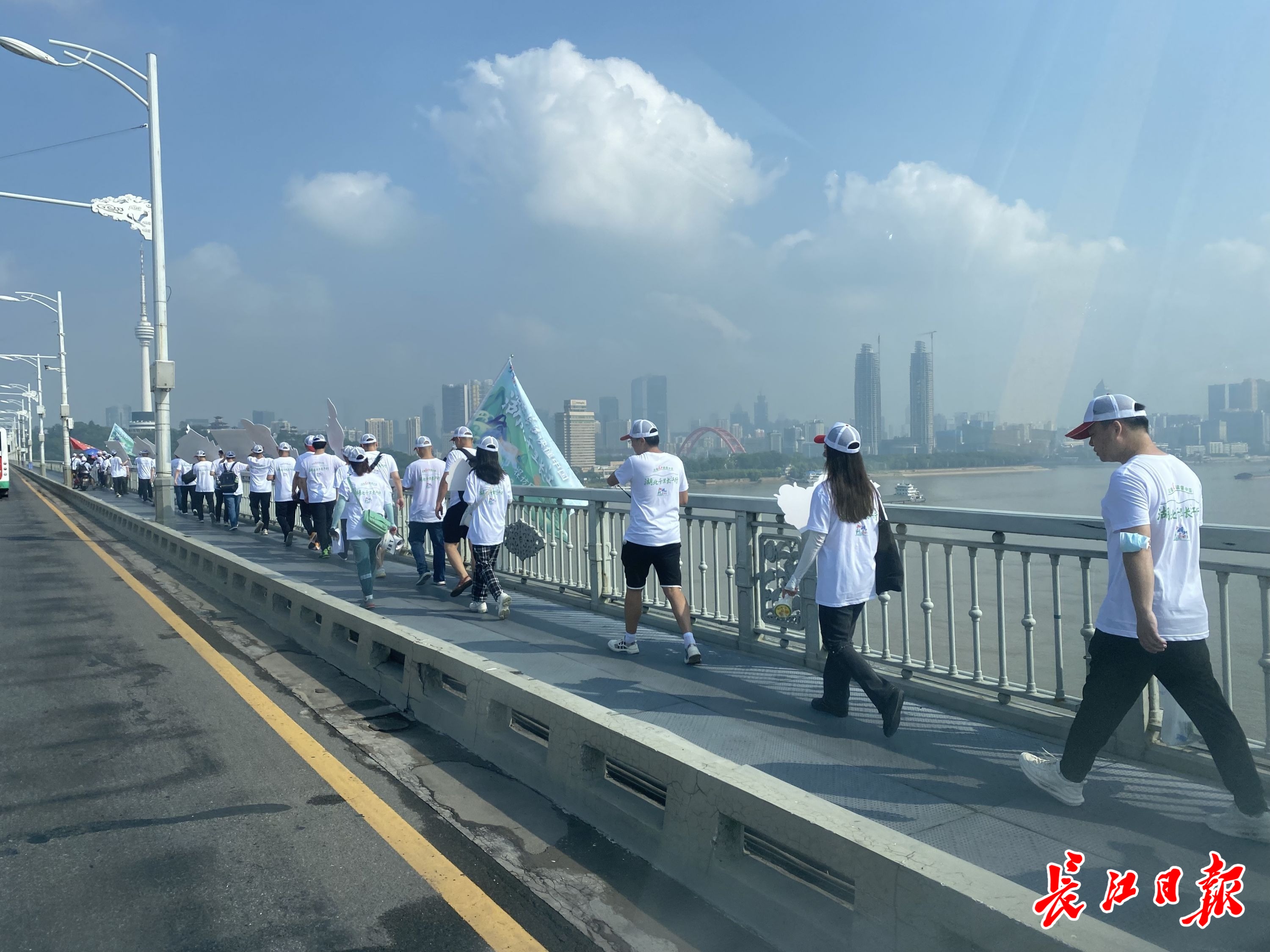 “沿着长江读懂中国——湖北千里长江行”百人文化探访团行走在万里长江第一桥武汉长江大桥上。记者彭年 摄