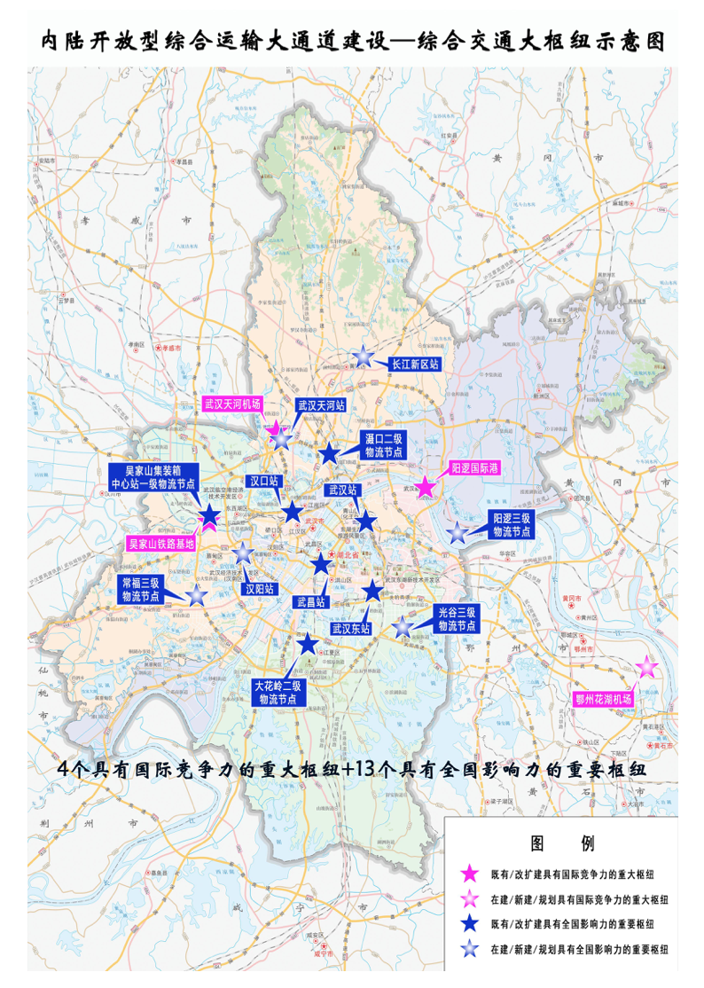 新建高铁汉阳站、武汉天河站、长江新区站等,形成“五主(武汉站、汉口站、汉阳站、武汉天河站、武昌站)两辅(武汉东站、长江新区站)”客站格局。