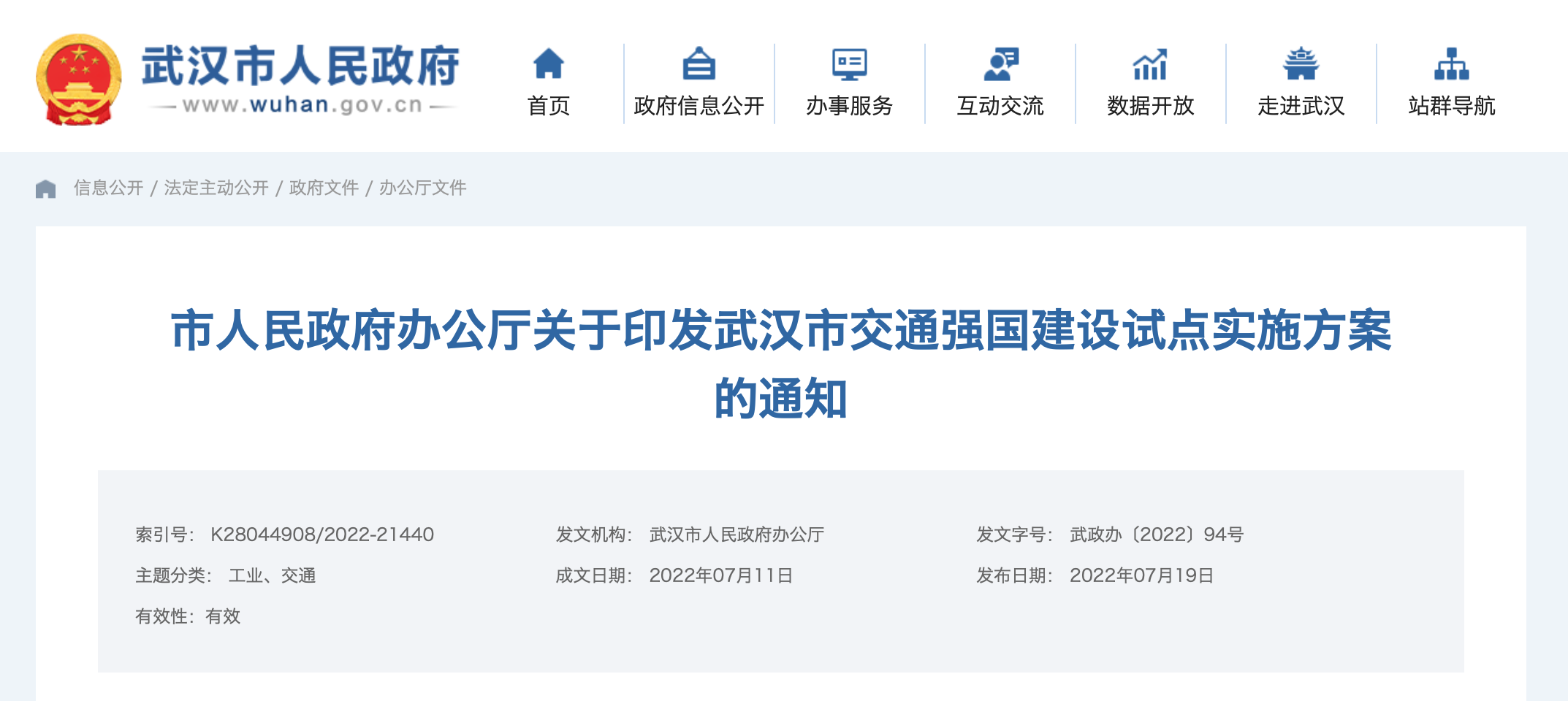 7月19日,武汉市人民政府办公厅印发《武汉市交通强国建设试点实施方案》(以下简称《方案》),提出武汉建设交通强国路径。