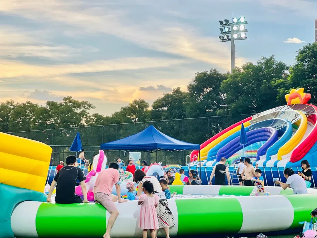 伴着夏夜晚风,全民健身的风潮也进入市民的日常生活。在经开区的武汉体育中心内,暑期夏令营的孩子们在足球、橄榄球等运动中提高体能、充实假期时光;水上乐园里的大小朋友们可以尽情享受戏水自由、增进亲子关系。