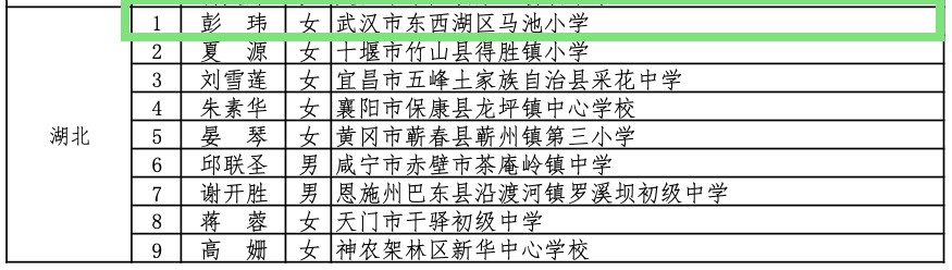 8月31日,教育部网站公示2022年乡村优秀青年教师培养奖励计划人选,武汉一位女教师入围。
