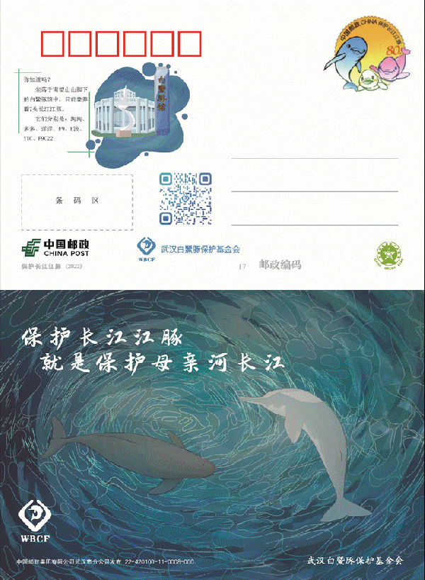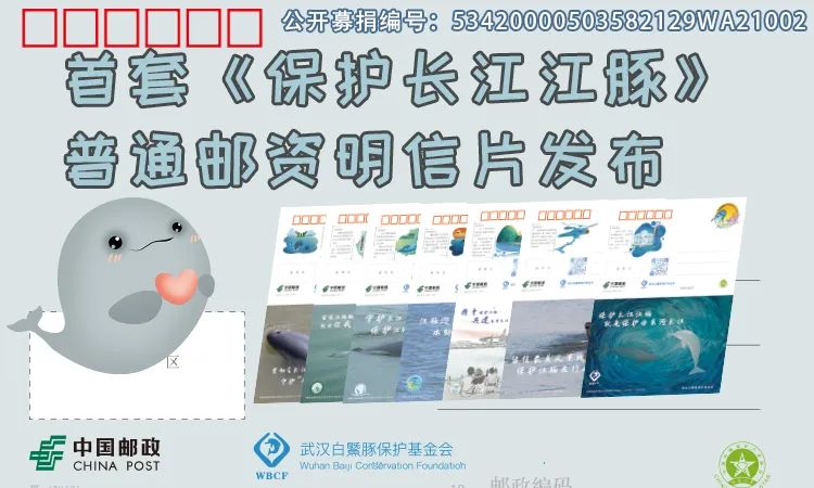 《保护长江江豚》普通邮资明信片全国发行30.8万枚,大家可以通过“武汉白鱀豚保护基金会”线上捐赠的方式,获取明信片及江豚文创产品。武汉白鱀豚保护基金会募集的所有捐赠,将用于长江江豚保护和保护区的支持工作。