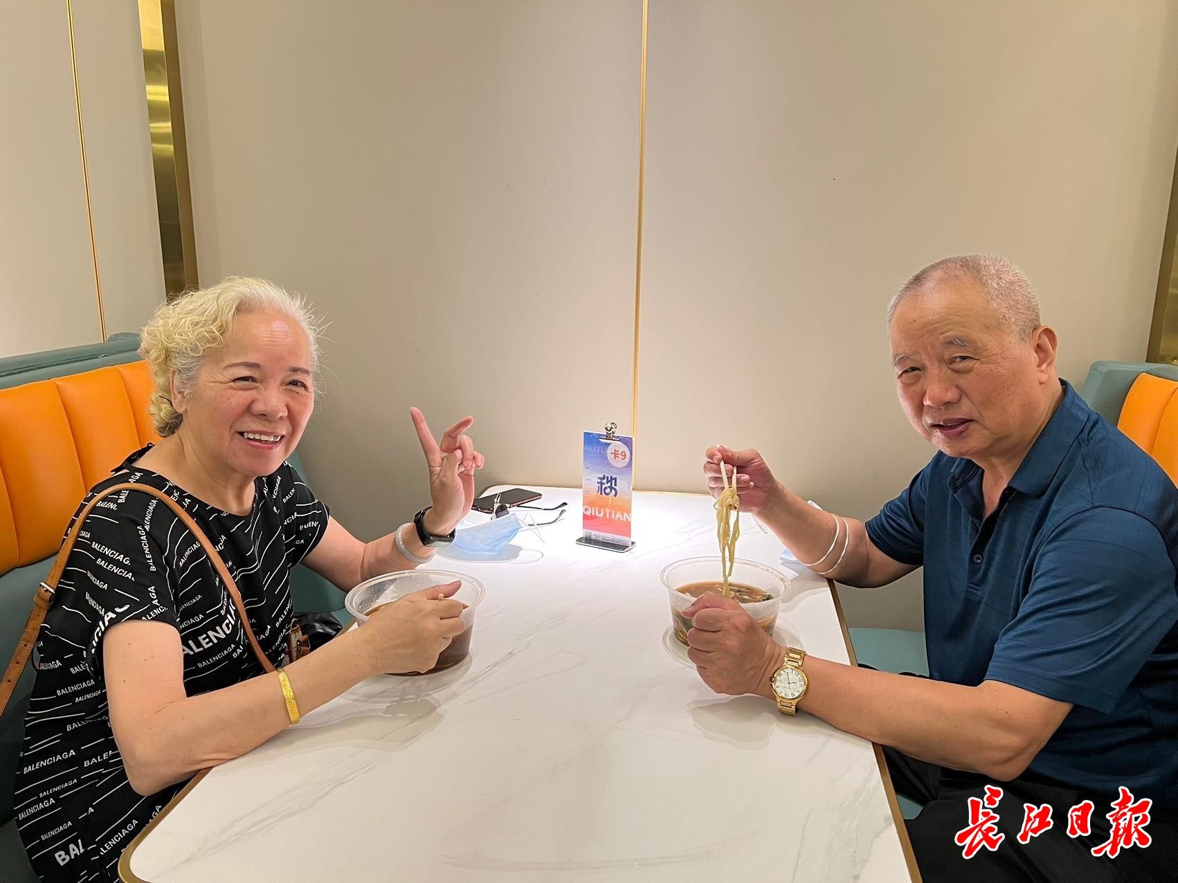 也有部分市民觉得一起吃面感觉更好。“长寿面味道好,面很干净,环境优雅,来之前以为,一人端一碗面就走,没想到是在这么静谧的环境下慢慢品味,‘祖国、国庆、长寿’这个寓意真好!这顿长寿早餐面我们会记一辈子,太赞了!”家住汉西路70岁的龙要武和老伴激动地告诉记者。