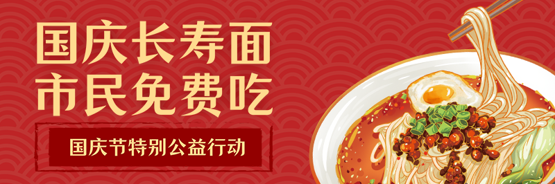 国庆吃面,国泰民安。长江日报联合武汉刘胖子家常菜发起“国庆长寿面 市民免费吃”特别公益行动迎来千名市民一起吃“国庆长寿面”,共同庆祝新中国73周年华诞。