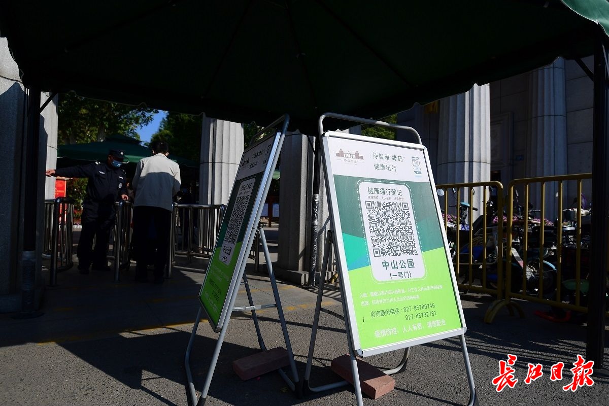 随后,记者又来到江夏区谭鑫培公园,从公园东门进入游乐区时,要先出示“双码”。入口两侧均悬挂着“入园须知”,还有喇叭提醒市民“戴好口罩,扫码入园”。入园后,还要通过全自动红外热成像测温告警系统,屏幕上不仅有全园监控,还能实时显示通过者的体温。