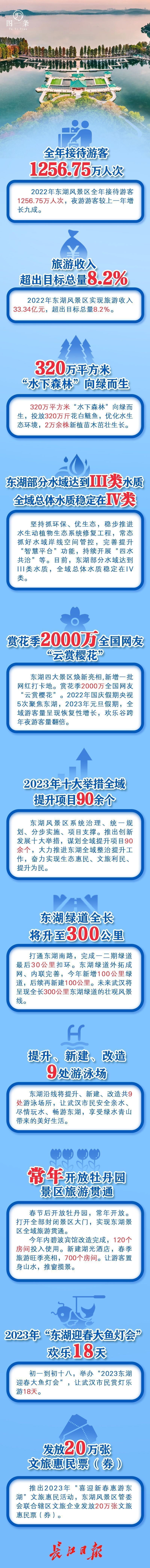 “因地制宜、量体裁衣,在现有基础上,激活东湖文化资源活力、稳抓融合、兴文旅、抓项目、稳投资,是我们正在并将持续走的道路,力争在疫情防控政策优化调整后,实现文旅市场快速恢复、加速增长,达到最好水平。”刘栿堂介绍,接下来,东湖将从生态惠民、文化挖掘、夜游提升、旅游设施丰富、智慧赋能、文旅产品创新等方面,为游客带来一系列开放举措、新增功能、惠民政策等,干货十足。