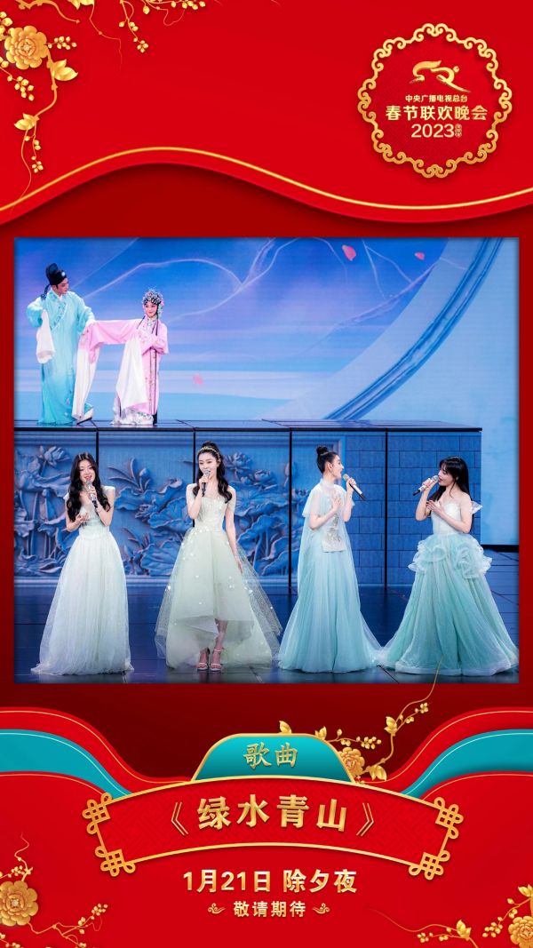 “青山依依年锦绣,绿水绵绵岁温柔……渡头恋恋留帆舟,月牙弯弯绕心头……” 由黄霄雲、宋轶、宋祖儿和单依纯演唱的一曲《绿水青山》,为春晚舞台吹来一阵清风,在流行歌曲与传统黄梅戏的融合中,山间清泉、花香茶香似乎都近在眼前。