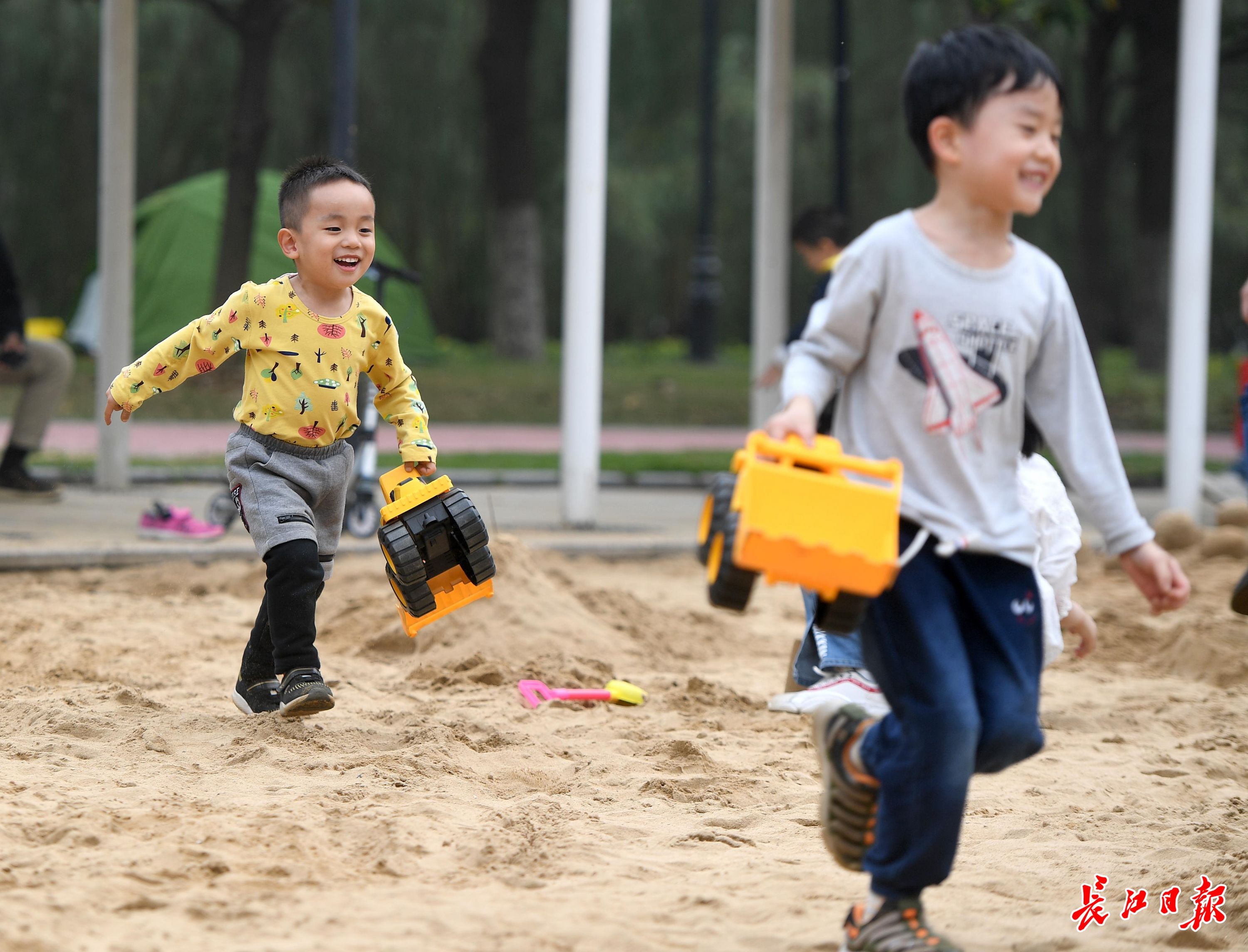 长江日报-长江网10月18日讯 10月18日,午后太阳出来,汉口江滩三期沙滩游乐区成了孩子们欢乐的海洋,众多家长前来遛娃,沙坑、海盗船、森林爬杆、造型爬网等让孩子们可以玩上一整天。玩沙之后,旁边还有洗手冲脚的水池,十分方便。(记者周超 摄影报道)