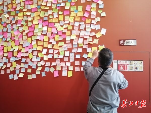 参观结束后,高先生排队写留言,郑重地贴在墙上:“感谢所有为武汉拼命的勇士,武汉明天会更好!”