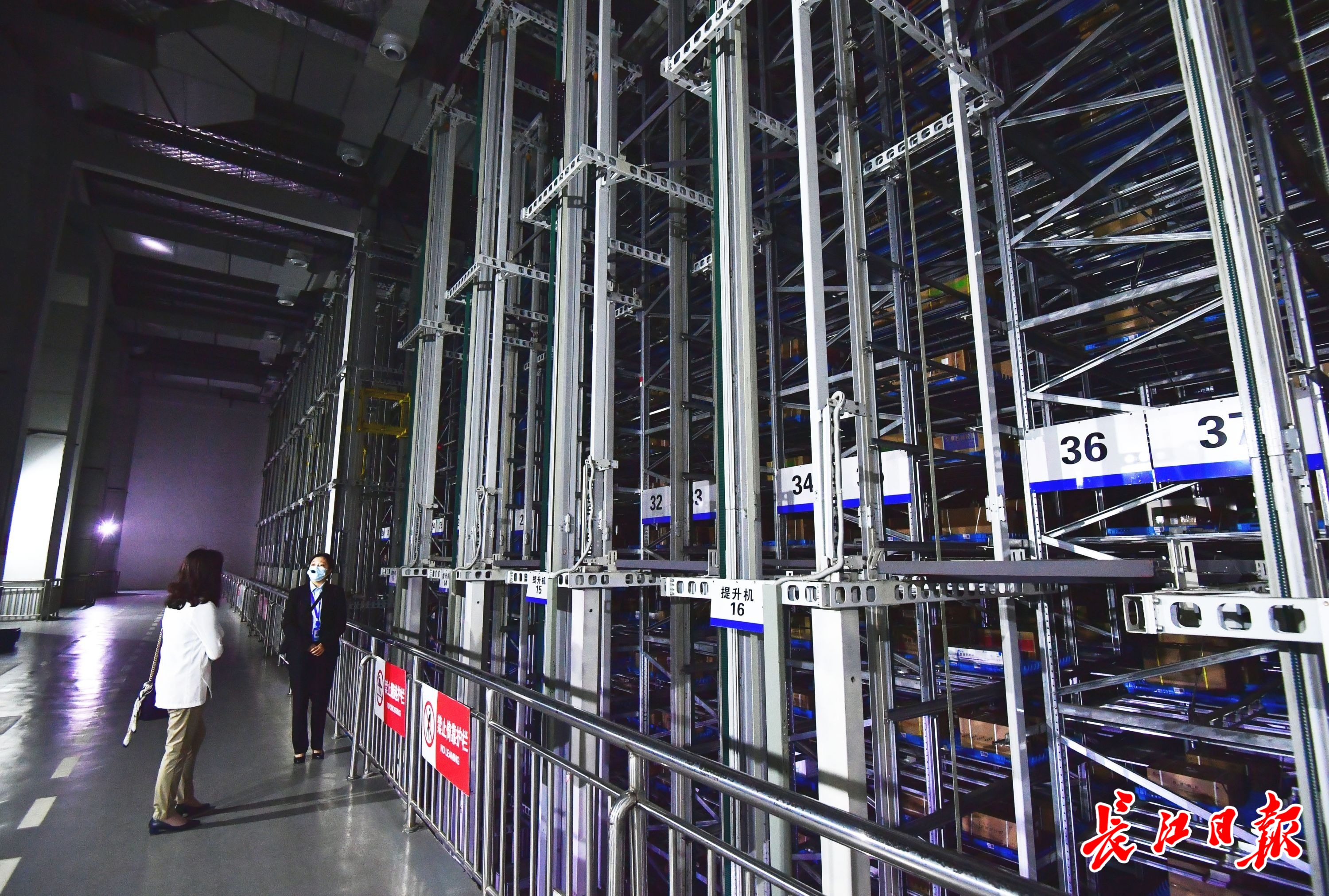 智能分拣中心内,高22米,占地面积2000平方的穿梭车库,里面的智能运输车正快速穿梭工作。长江日报记者 喻志勇 摄