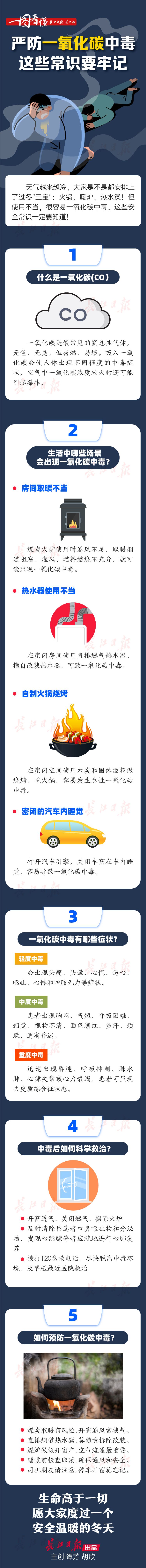 长江日报-长江网1月5日讯(记者李慧紫)入冬已来,武汉市已发生多起一氧化碳中毒事故。1月5日,提醒广大市民:冬季是一氧化碳中毒高发的季节。用气、取暖时应注意保持通风增强安全意识,谨防一氧化碳中毒。