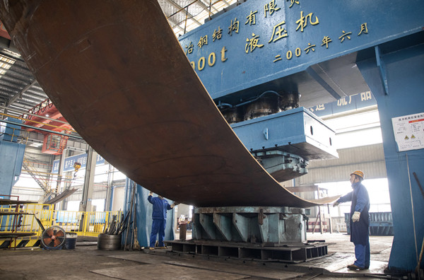 8日上午,长江日报记者在中国一冶科工公司压力容器生产基地看到,三台2000吨液压机开足马力,多名电焊工、气焊工、铆工各司其职,有条不紊,车间内一派繁忙工作景象。一冶科工公司相关负责人介绍,为了年后完成山东中海精细化工12台球罐项目、三江化工有限公司6台球罐项目,40余名管理和生产人员放弃春节休假,轮流值班,保证了生产进度。