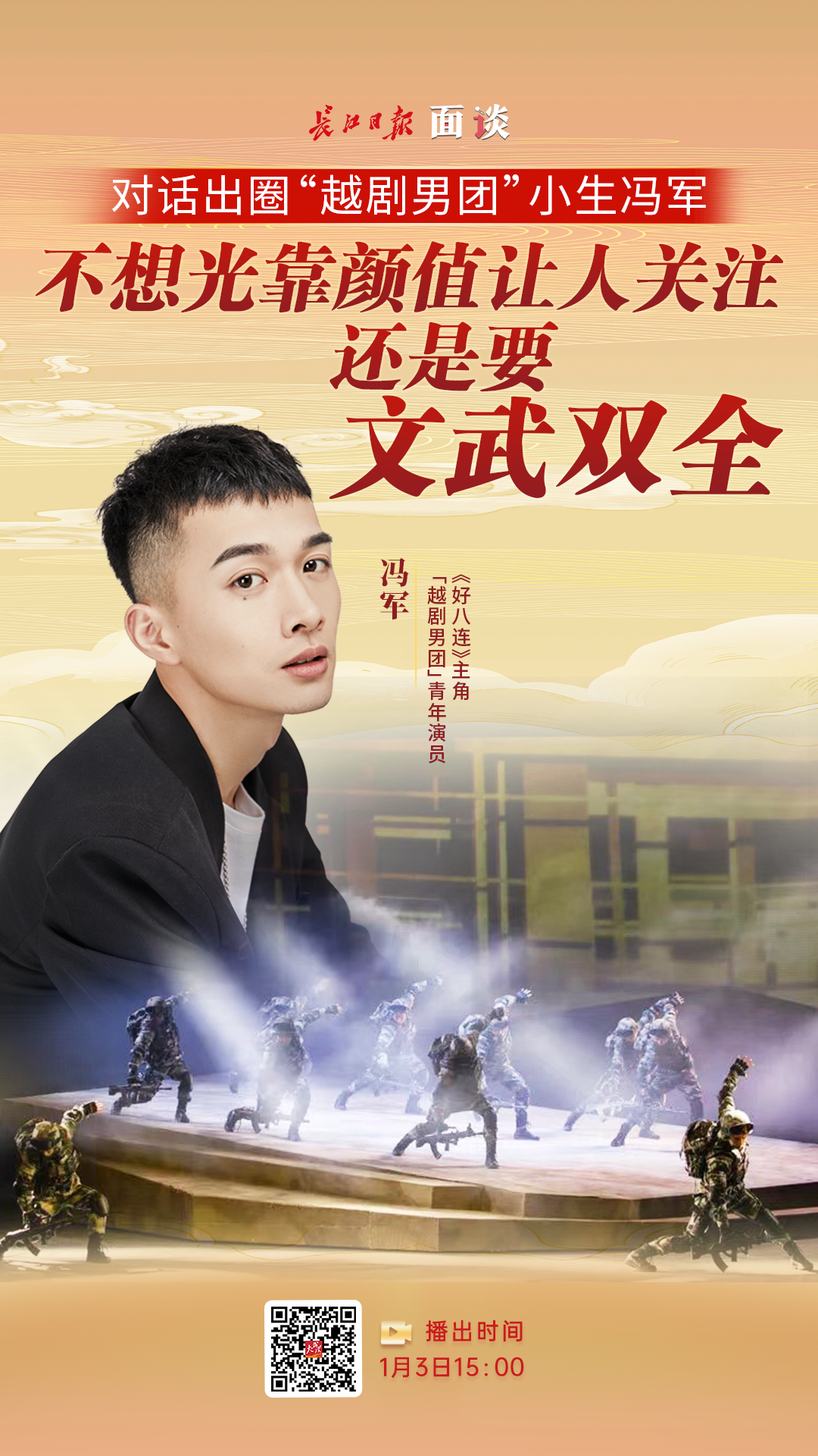 近日,“越剧男团出道”备受网友关注,他们来自上海越剧院,最近上演了现代戏《好八连》。如今广为流传的越剧以女演员为多数,男生在越剧界很少见。“越剧男团”青年演员、《好八连》主角冯军外形出众,有过两年消防兵的经历。1月3日,他做客《面谈》分享演出传统戏曲的感受。(点击下图回看直播)