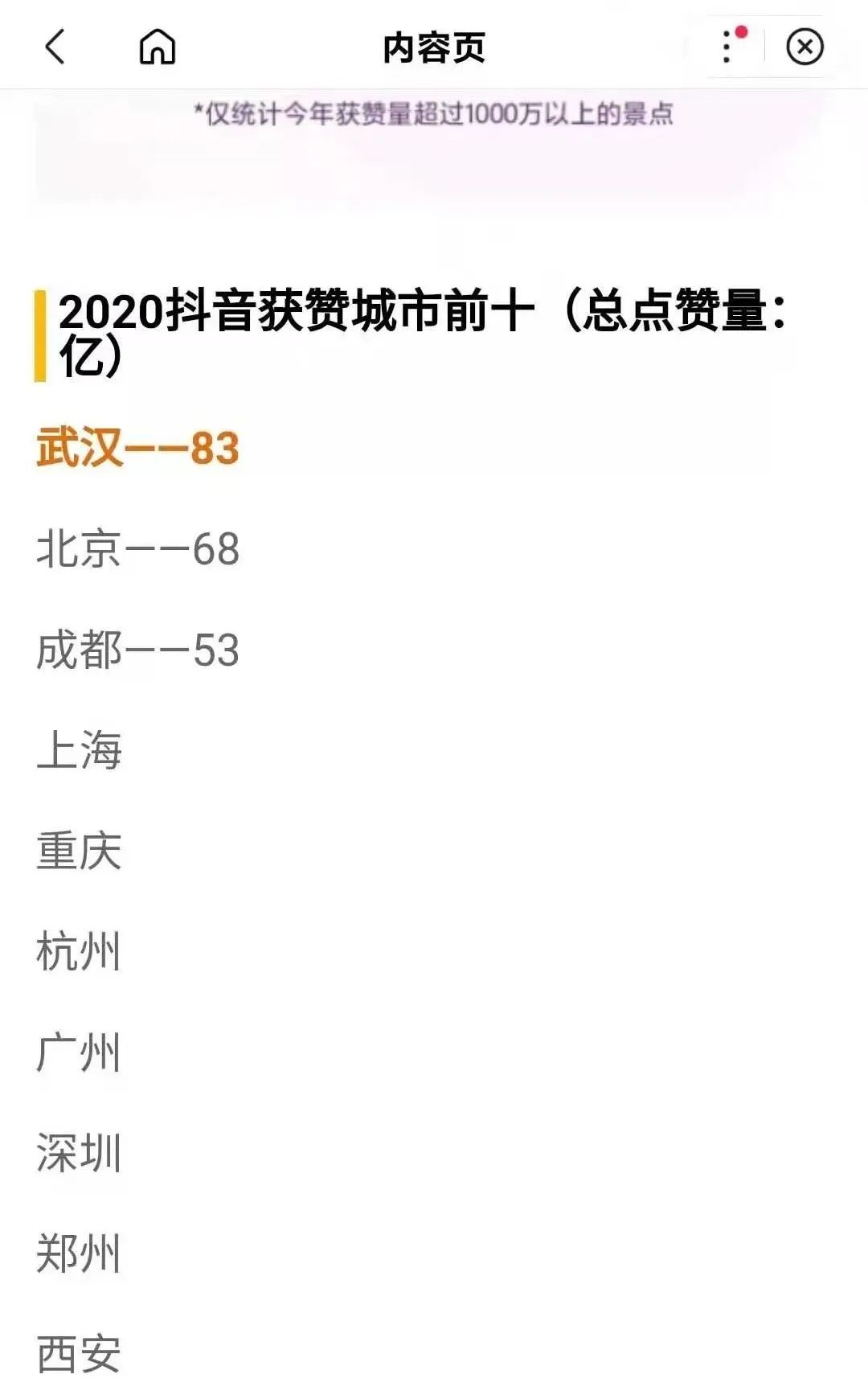 成为2020年全国获赞最多的城市