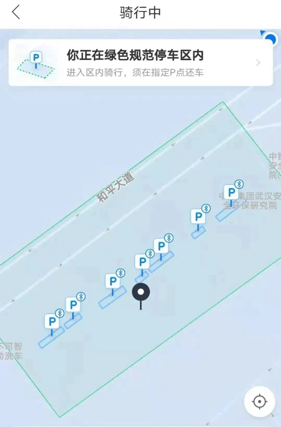 共享单车停在安装了蓝牙道钉的线框内,才能正常锁车。